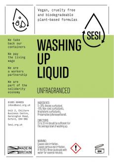 Washing Up Liquid from SESI (School Ethical Supplies Initiative). A fully circular process based in Oxfordshire. Bring your own container. Available in store only.